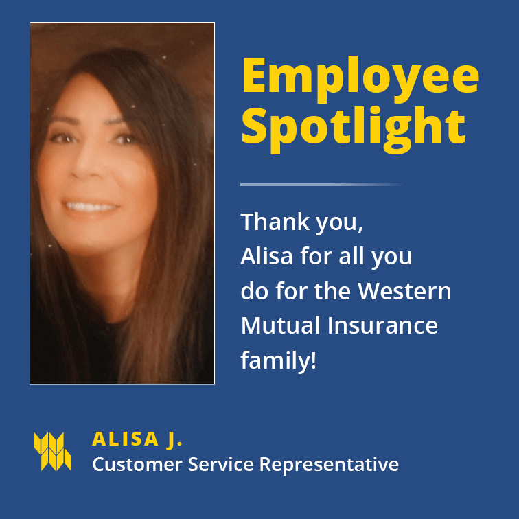 This quarter we are featuring one of our wonderful Customer Service Representatives. Alisa has been part of the Western Mutual/ Arizona Home team since 2014. With 17 years total in the Insurance and Customer Service industries, and previous service in the military, she is a valuable asset to the department. Her excellent service is reflected in her 7 (yes 7!) Customer Service awards, helping her team maintain the 90%+ approval rating by callers.